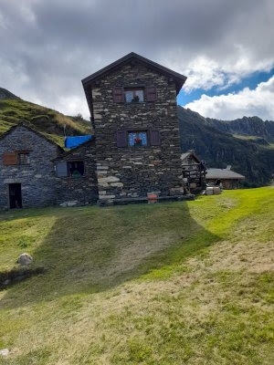 Forse stavamo più attenti ed arrivavamo comunque e più rapidamente alla meta. Ahimè l’età! Avremmo dovuto proseguire diritti dalla radura con vista lago, anche se il sentiero nel prato non era più evidente. Dopo tre quarti d’ora da Vanzone ricompattiamo il gruppo alla cappella ricovero della Fulka, 1432. Poco oltre incontriamo il sentiero dedicato a don Cirillo Bergamaschi, sulla destra, che porta all’Alpone, dove andranno ad aspettarci la nostra paziente badante ed un amico. Don Cirillo, studioso e ricercatore presso il Centro Studi Rosminiani di Stresa, era originario di Gurro e fu il promotore del Museo Etnografico del paese.