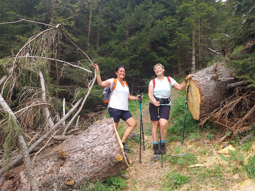 Stiamo camminando sull'enorme frana staccatasi nel 1642 dal Monte Pozzuoli che portò alla formazione del lago, sbarrando le acque del torrente Troncone. Si comincia a salire decisamente ed arriviamo all’Alpe Fornalei, 1094. Io tengo il mio passo per non andare fuori giri e gli amici, che hanno una marcia in più, mi aspettano con la solita pazienza. Notiamo subito, e così sarà fino a Cheggio, che qui è stato fatto un lavoro eccezionale di sistemazione e pulizia del sentiero, devastato anche dalla caduta di grossi alberi.