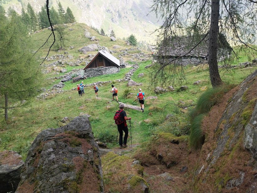 Le risorse per il loro maggiore impegno verranno detratte dagli onorari dei sanitari. Come quasi sempre quando ci accompagnano gli ombrelli negli zaini, non pioverà, ma dobbiamo cercare di attenerci alle sempre più complicate previsioni meteorologiche. Parcheggiamo nell’area feste di Antronapiana, 908, all’inizio della strada per il lago. Dopo un breve tratto di asfalto s'imbocca sulla destra il sentiero ben segnato che ci porta all'Alpe Cimallegra, 1014.
