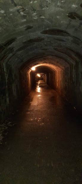 La galleria è illuminata a tempo, ma siamo comunque attrezzati con frontalini. Ben vestiti, la percorriamo di ottimo passo in poco più di un quarto d’ora. Usciamo nel piccolo piazzale dominato dalla maestosa diga del grande bacino idroelettrico di Agaro, altro ex villaggio walser sommerso nel 1938 dalle acque del Rio di Agaro. Saliamo alla casa dei guardiani e di qui ci dirigiamo a nord ovest lungo il sentiero H10, che fa parte del Tour Walser.