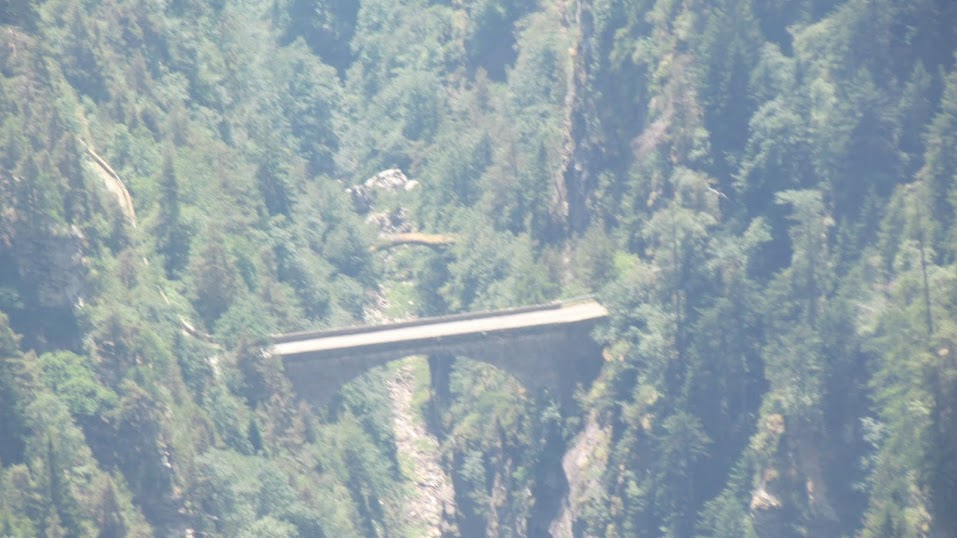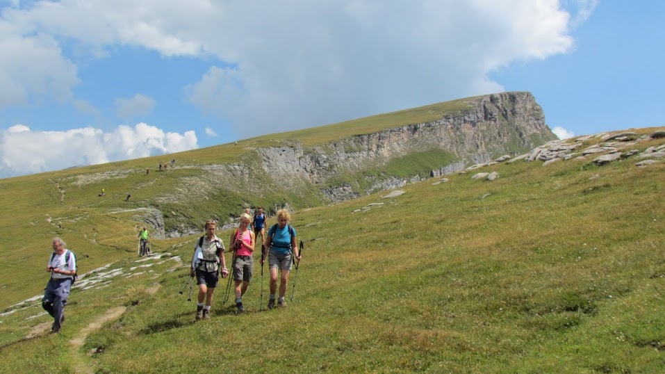 Da valle giungono buone notizie di Nena. Si scende verso ovest e sud ovest lungo il vastissimo e suggestivo declivio erboso dal quale osserviamo d'infilata, mille metri più in basso, gli storici ponti del Diavolo e del Diavolino. In poco più di mezz’ora siamo al Passo delle Possette, 2179, e, diretti a sud, un’altra mezz’ora abbondante di ripida discesa, sempre su evidente sentiero, ci porta all'Alpe Ciampalbino, 1920.